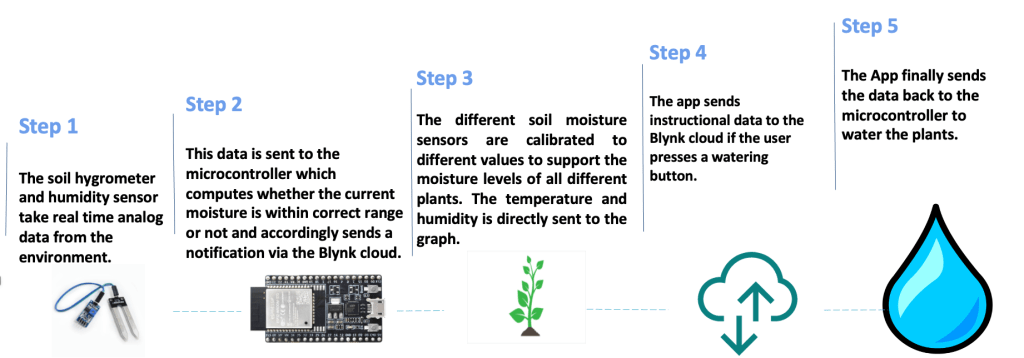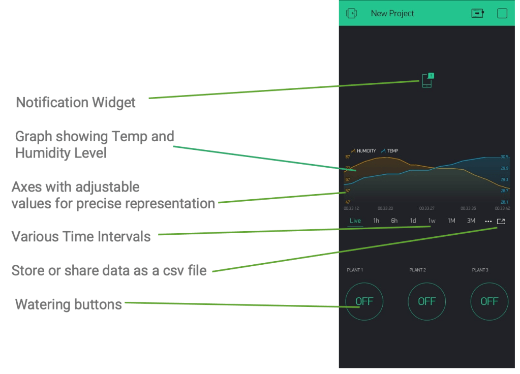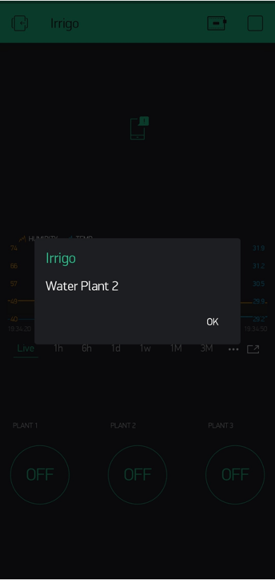 Our app offers two possibilities. The first is to automatically water plants without any human interaction. The second option is that the app sends a notification every time the moisture level of the soil dips below the required level. This mode is useful for users who wish to stay updated about their plants.