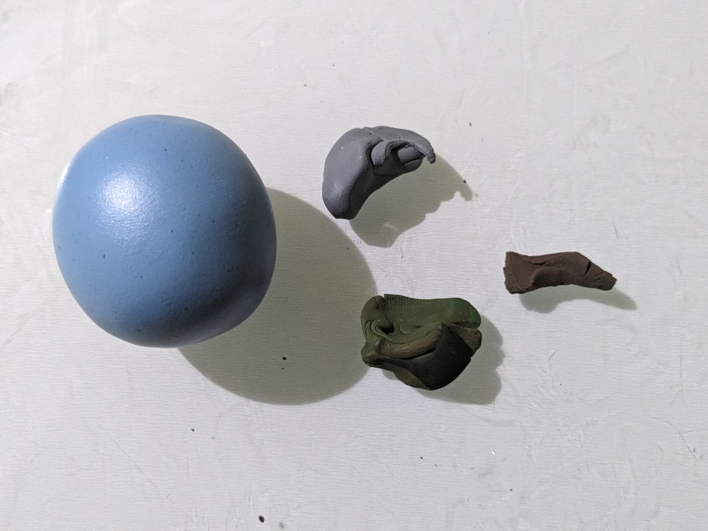 Step 2: Flatten the blue clay into a thin sheet about a quarter inch thick.