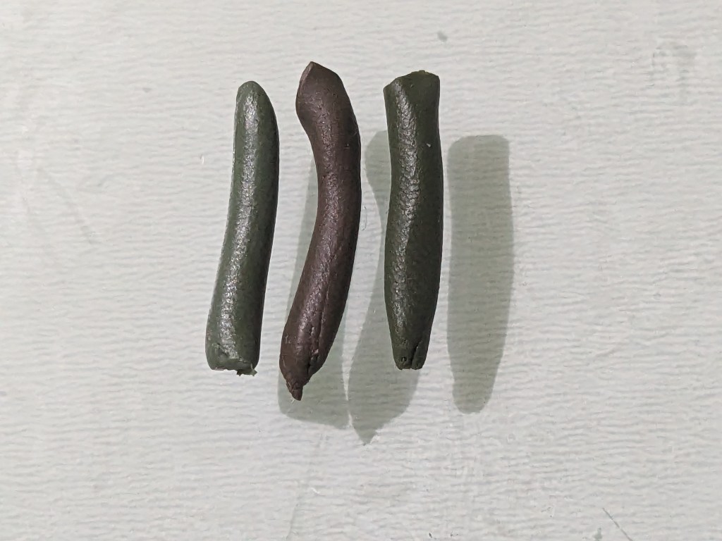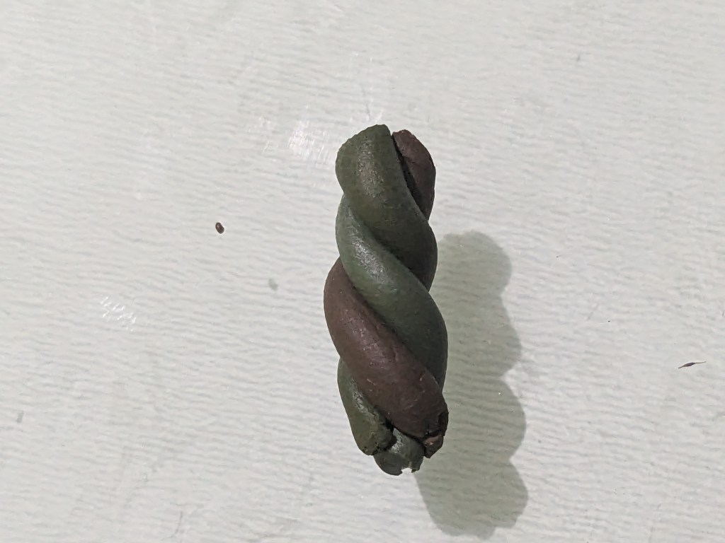 Step 4: Roll out your ‘woody’ shades into logs and twist them together, tapering as you twist.