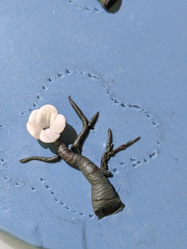 Step 7: Arrange them into a flower and use the tip of your X-acto knife to add dimension to the flower. Add the flower to the end of one of the branches.