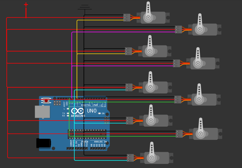 Step 4 was integrating the remaining 8 servos. This is the circuit diagram: