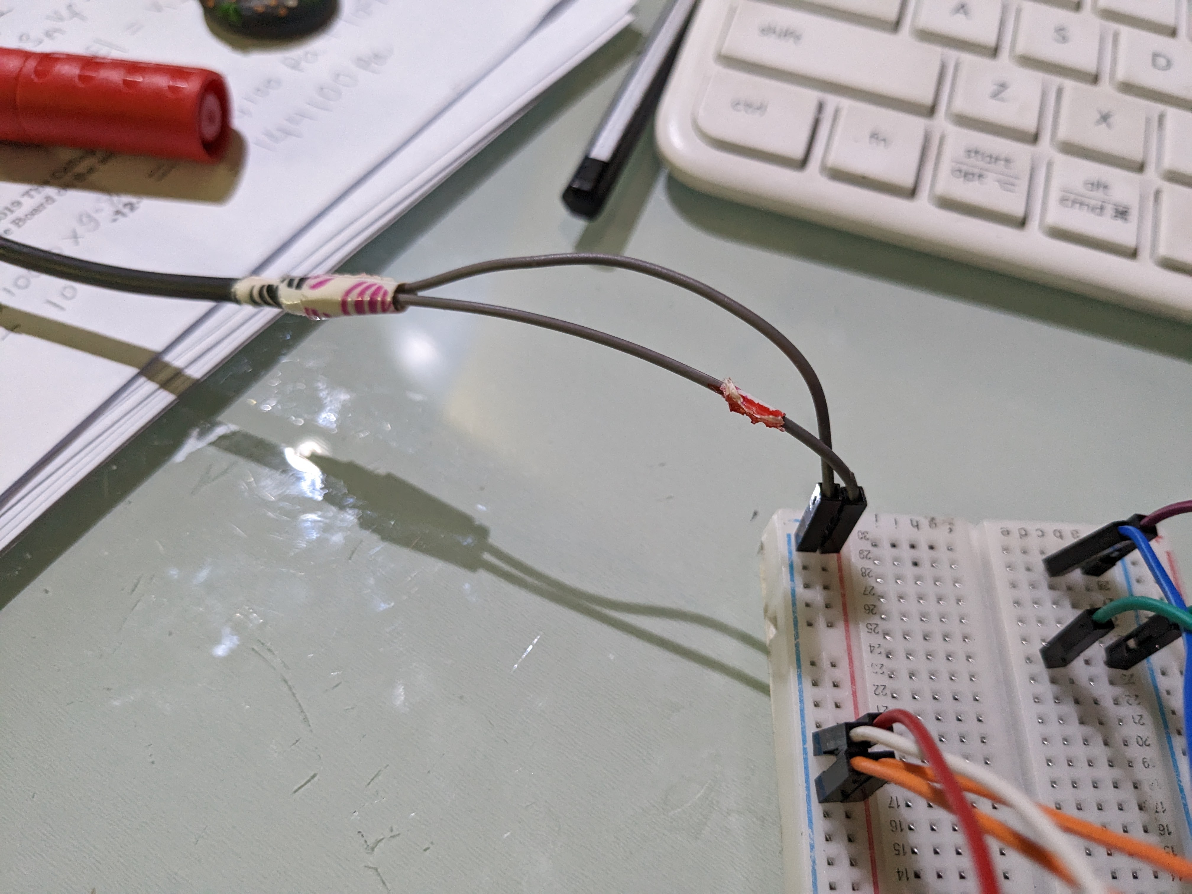 My board could not handle the current draw for the servos, so I needed a separate power supply. There are breadboard power modules in the market, but I cut open a broken cable and used a standard 5V/2A phone charger.