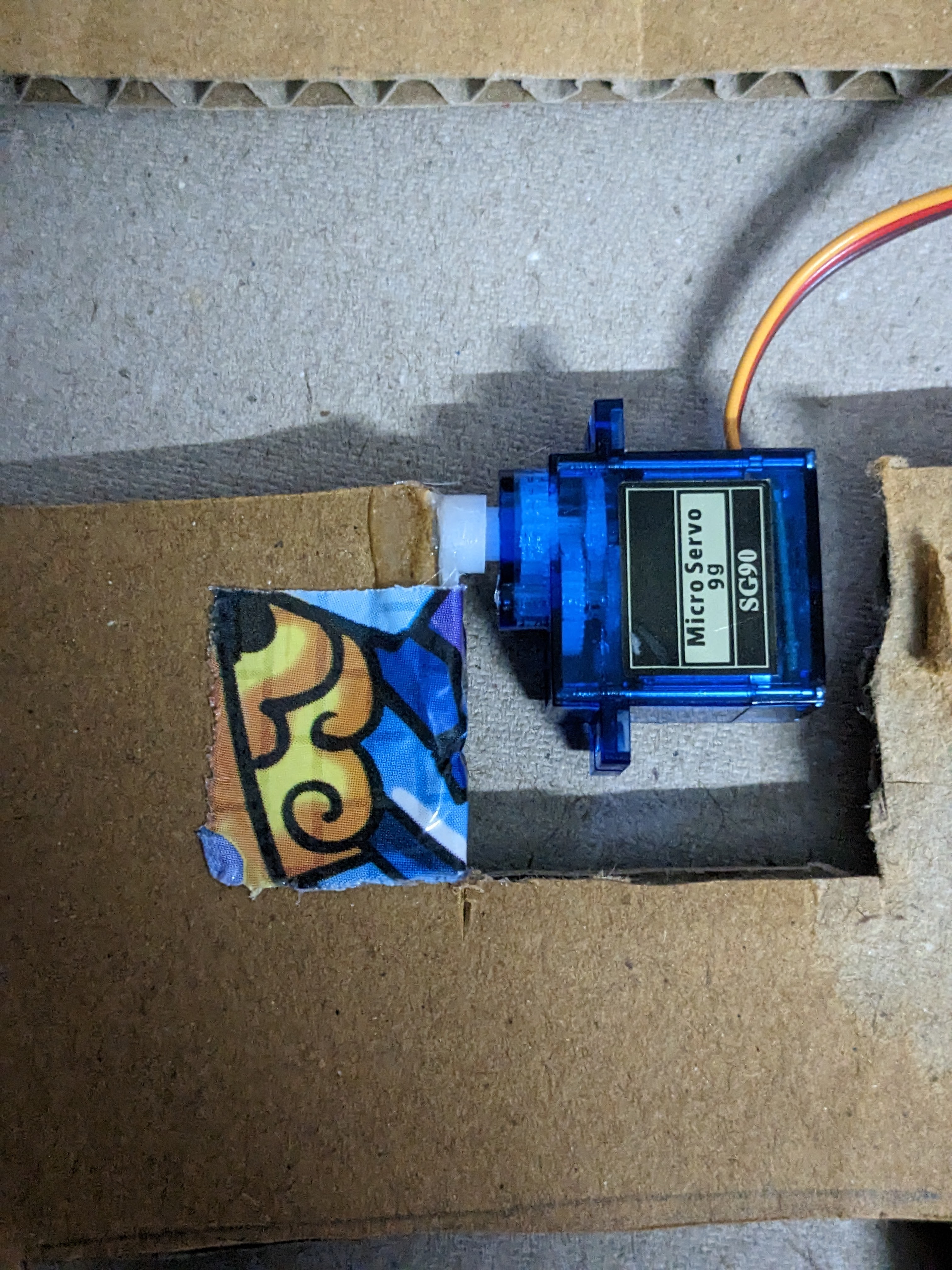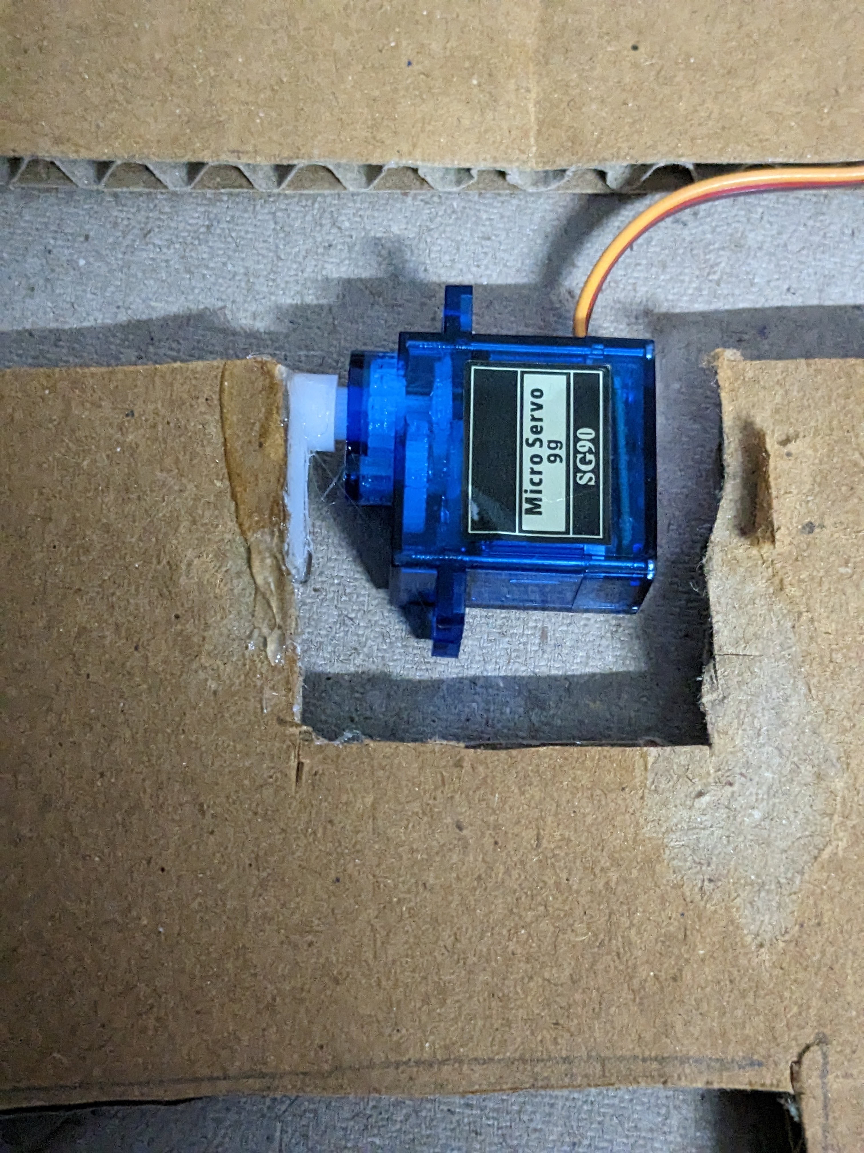 Based on the first servo, I realised that I needed to make the panel lighter and manage the torque better. To achieve this, I added an additional servo and cut out holes in the panel to make it lighter.