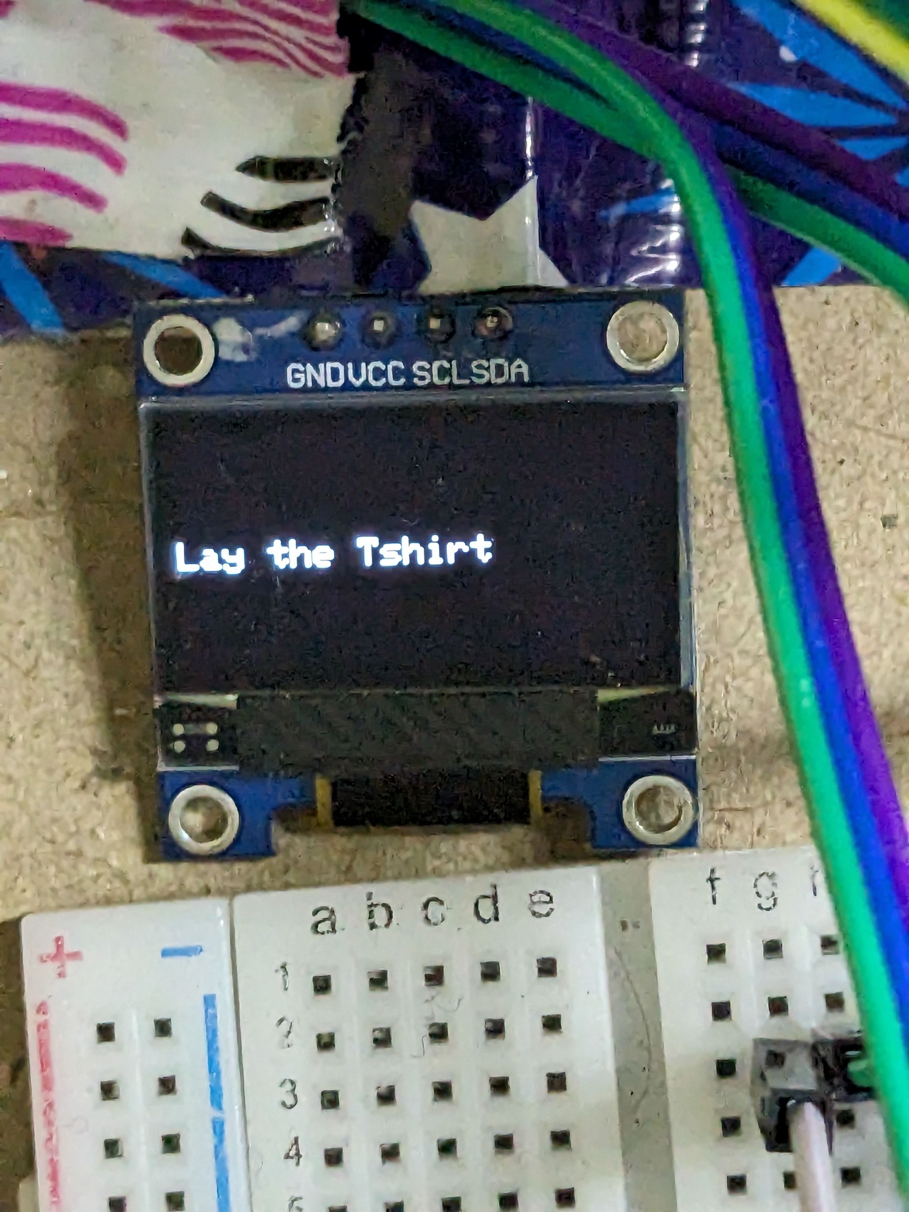 The hardware required a significant amount of finishing. I had to tape down all the servo wires so they wouldn’t interfere with the panels. I shaved down a lot of the panel edges so there would be room for the wires and the servos. It took me a few tries to figure out a way to connect the servo and the panel that wouldn’t send the panel flying off. Perhaps a 3D-printed arm of the servo that clips or screws onto the panel might’ve worked better. I also had plans to add a photoresistor or an IR sensor to sense the T-shirts so the folding begins automatically. But the RAM constraints did not allow for this. Teebot is also huge and I’d like to create a prototype that folds into a textbook-size product. The wiring is also terrible at the moment, so I hope to solder everything onto a zero-PCB and eventually make my way to a custom circuit board.