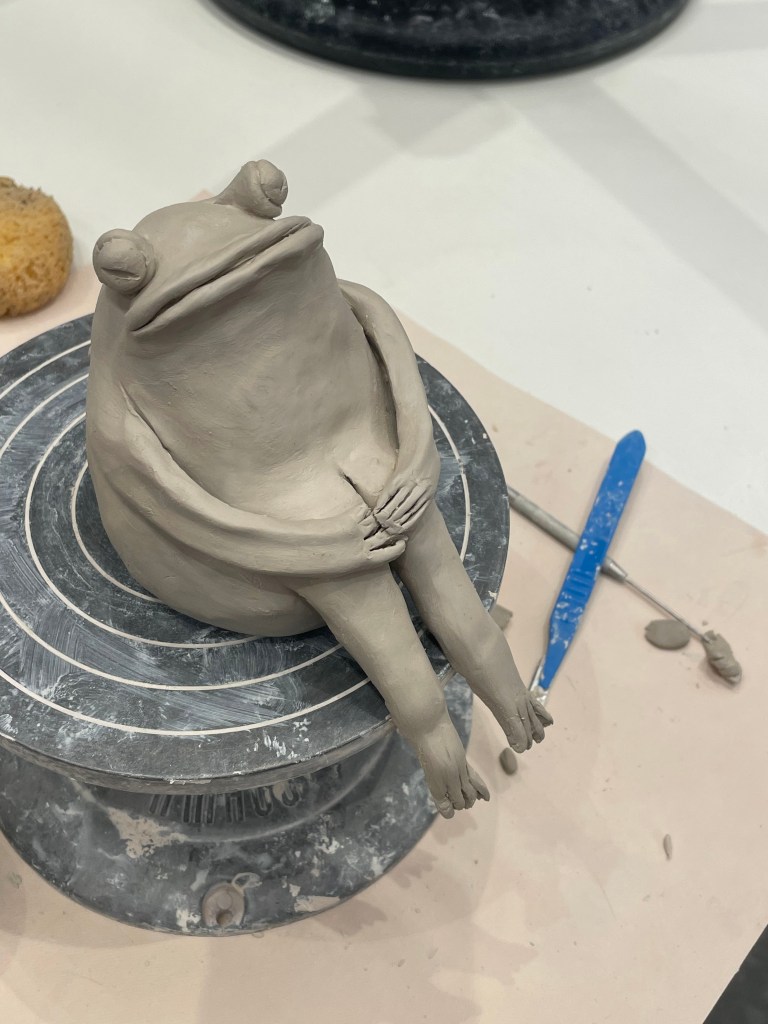 I’ve been doing ceramics for about a year now, and I think I’d like to change up my process a bit. I’ve mostly been experimenting and making whatever feels fun in the moment, which has been great. But going forward, I definitely want to become more technically skilled. I really enjoy the process of making the things I do, and I never want to lose sight of the fact that it’s okay to be bad at something – the point is to enjoy the process. There’s already so much we’re expected to be good at. I think it’s time to learn new things (and be bad at them!) – learn how to throw, build more refined or intentional pieces, maybe even try my hand at realism or sculpting with more anatomical accuracy.