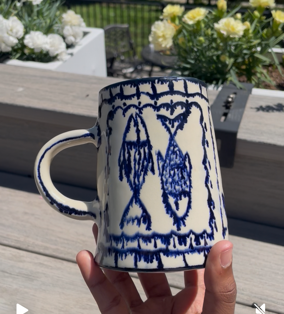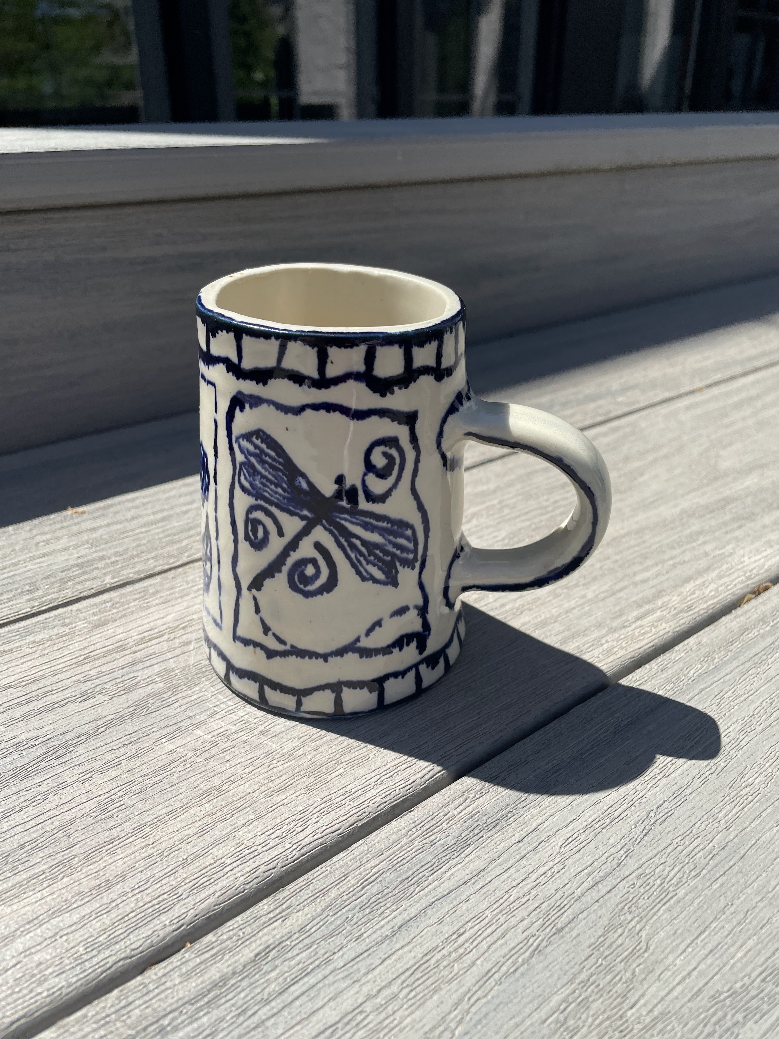 This was another mug that I made. The underglaze ran – which is the first time I’ve had it happen to me. But I like how it turned out, regardless. I’ve been thinking of making tiles in this style, but I’m not sure what I would use the tiles for. Maybe a few other mugs?