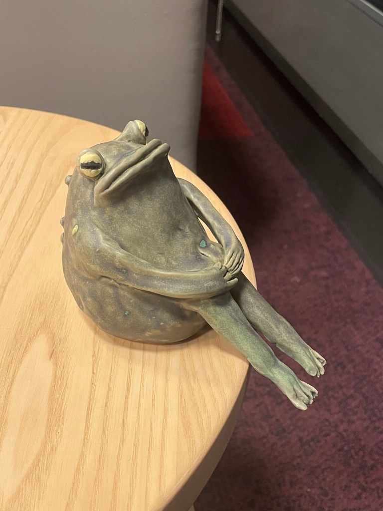 I actually left the toad behind as a gift for my TA. He was incredibly kind and supportive – always willing to stay an extra half hour just to help me think through ideas. This was my first non-required writing class at college, and it was a huge learning curve, but he really made it a memorable one. I hope he liked the toad 🙂