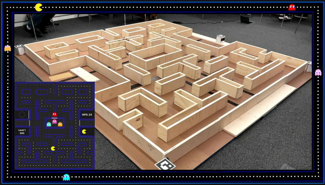 For those unfamiliar, PacBot is a real-life robotics version of the classic Pac-Man arcade game: a palm-sized robot traverses an intricate maze, collecting as many pellets as it can while avoiding four simulated, ghosts. View Pacbot 2025 here.