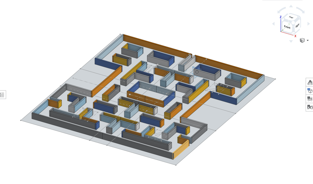 Over winter break, I CADed the entire maze in Onshape. I made many mistakes – like prioritizing the 7-inch corridor width but not double-checking the overall dimensions. That led to some odd measurements (hello, 2.186 inches) that we had to round on the fly.