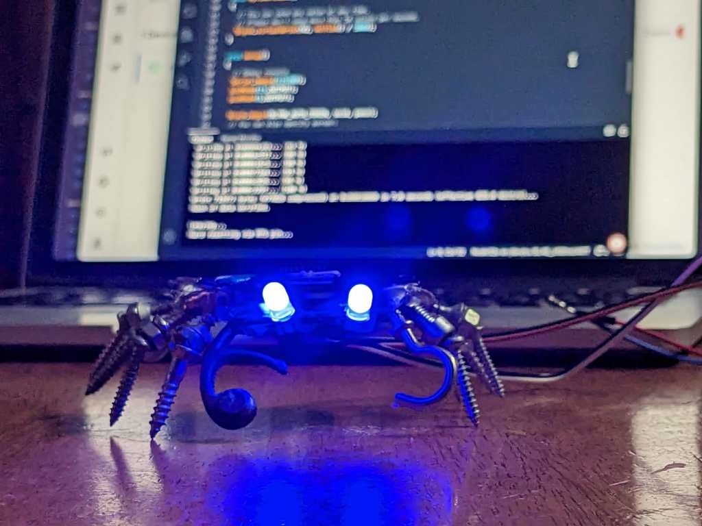 I made this crab from old electronic components as an art project. I wanted to test out Blynk 2.0 and Arduino Cloud with Alexa integration, so used the LEDs of the crab for fun. I can control the LEDs using the commands “Eye 1 on!” or “Eye 2 on!”.